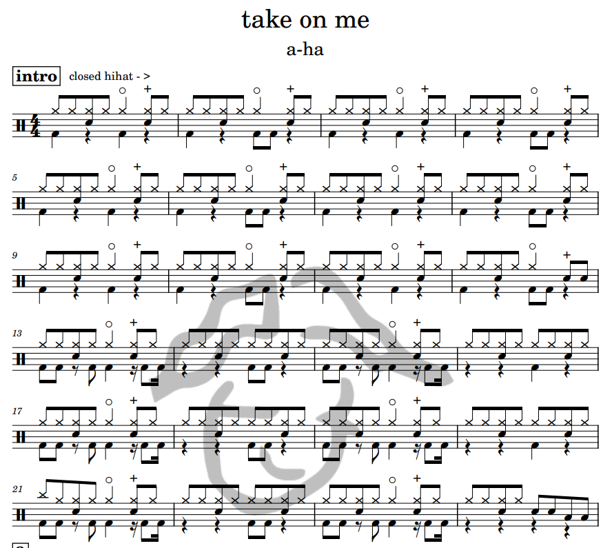 [은규네스튜디오] 드럼악보 a-ha - take on me